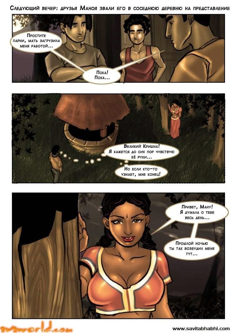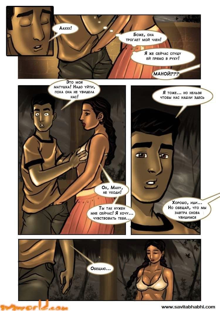 Читая онлайн, очередное продолжение порно комикса о великолепной Савите Бхабхи вы узнаете, как во время следующего сеанса массажа молодой парень Маной рассказал соей зрелой хозяйке о своей былой любви с девушкой, которую ее родители выдавали замуж за богатого мужчину. Но молодая красавица хотела попробовать запретного плода с тем, кто ей нравился, а именно с Маноем. И это случилось в скрытном месте. За этим повествованием Савита сильно возбудилась, и ей самой захотелось жесткого секса. А как это происходило узнаете дальше, причем, бесплатно.