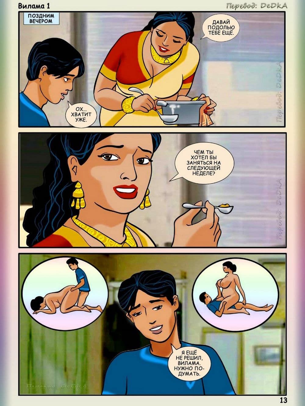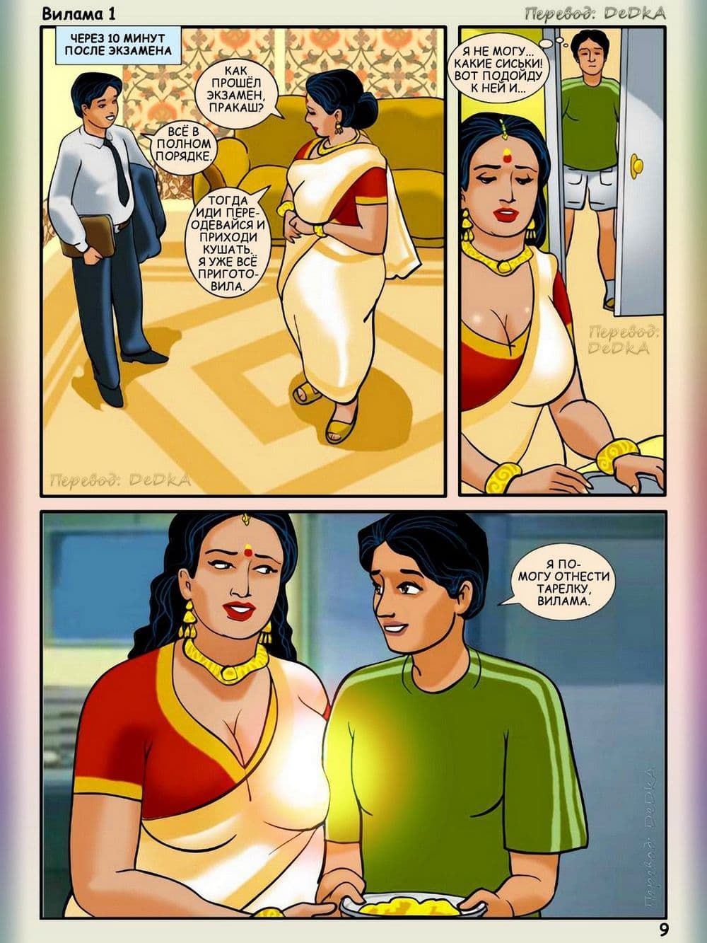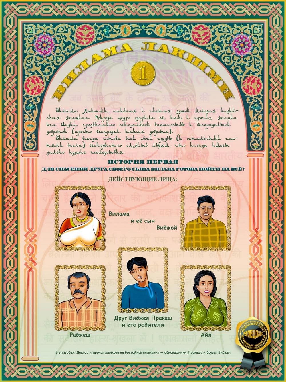 Вся история порнокомикса Вилама Лакшми начиналась с того, что сын Виламы заканчивал школу и у него через несколько дней должны будут состоятся экзамены. Вместе с этим к ним приехал сын их друзей по имени Пракаш, он такой же будущий студент, который не только будет проводить все свое свободное время в гостях у семьи Лакшми в титанической учебе, но и захочет постараться соблазнить аппетитную и грудастую, добрейшей души женщину, а также завалить ее в мягкую постель. Наивная взрослая женщина в добром порыве всеми силами старается помочь молодому парню, а тот старается сблизиться с хозяйкой, и тут случай дает возможность для реализации его коварного сексуального плана.