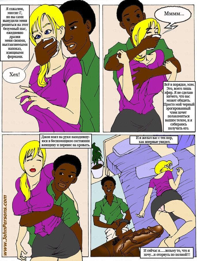 В этом эро комиксе на русском молодой негр — паренек мечтает овладеть взрослой матерью своего белого друга. Он готов пойти на все, чтобы отыметь ее в сладкие отверстия. И с собой принес хлороформ, дабы усыпить зрелую мамашу.