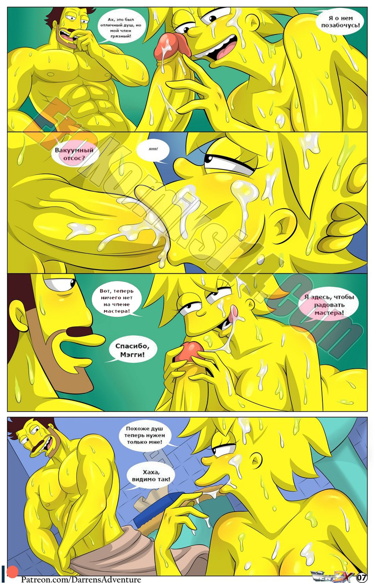 Порно комикс Приключения Даррена. Часть 10. Симпсоны. Мужчина плотно поселился в этой семейке. И трахает все киски в доме. Но девушки даже не в курсе всех его похождений.