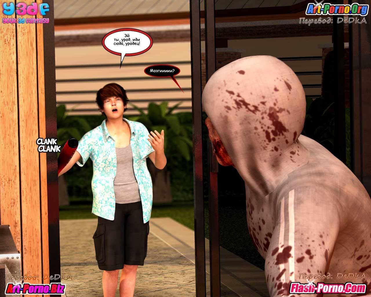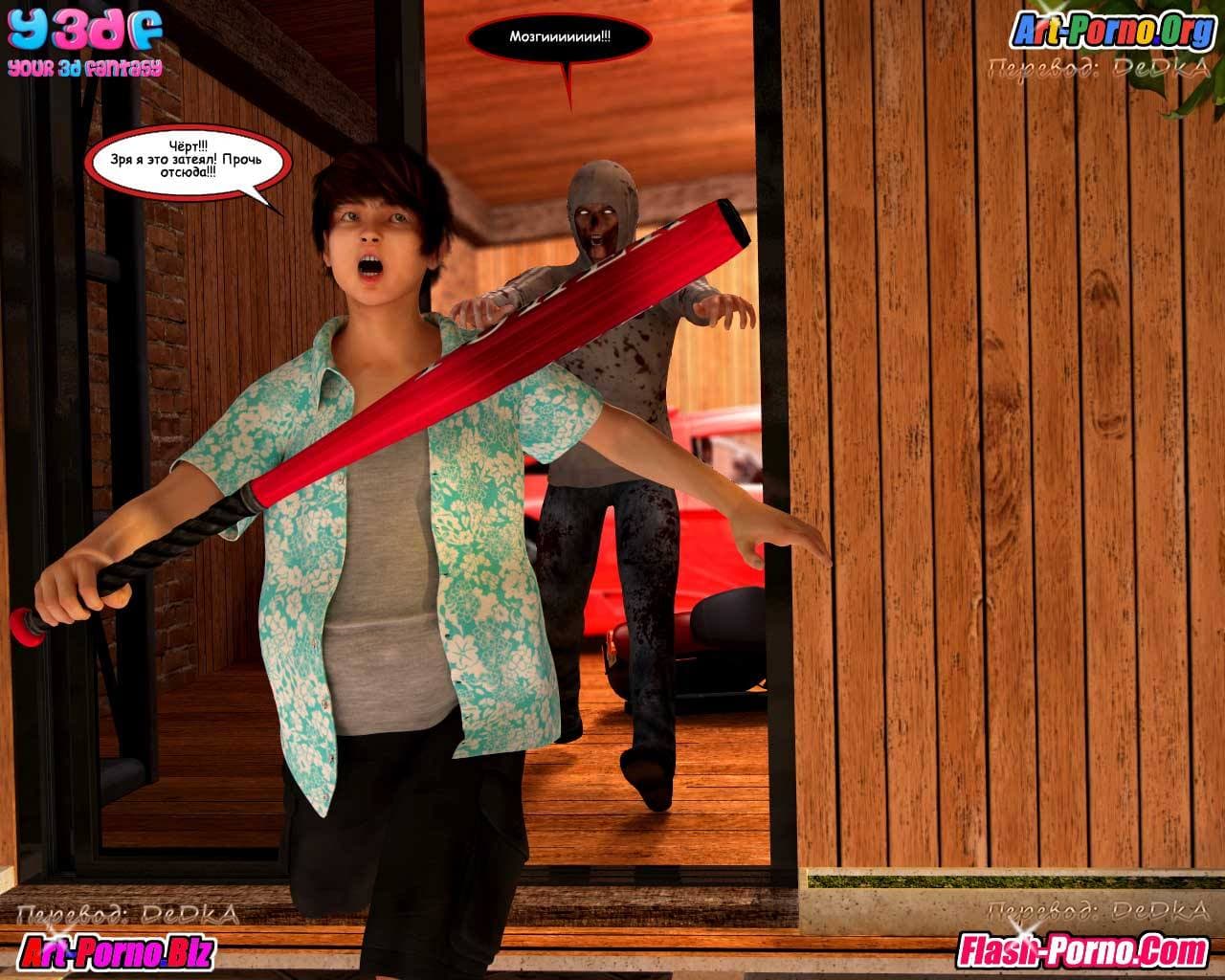 Следующая часть для взрослых продолжает порно комикс долбаный покойник, из которого становится известно, что глава семейки, наконец, обнаружился. Как оказалось, ему удалось пробраться в гараж, где в тот момент находился зомби и заскочить с ходу в машину. Вот только уехать не вышло, ключей то у него не было…