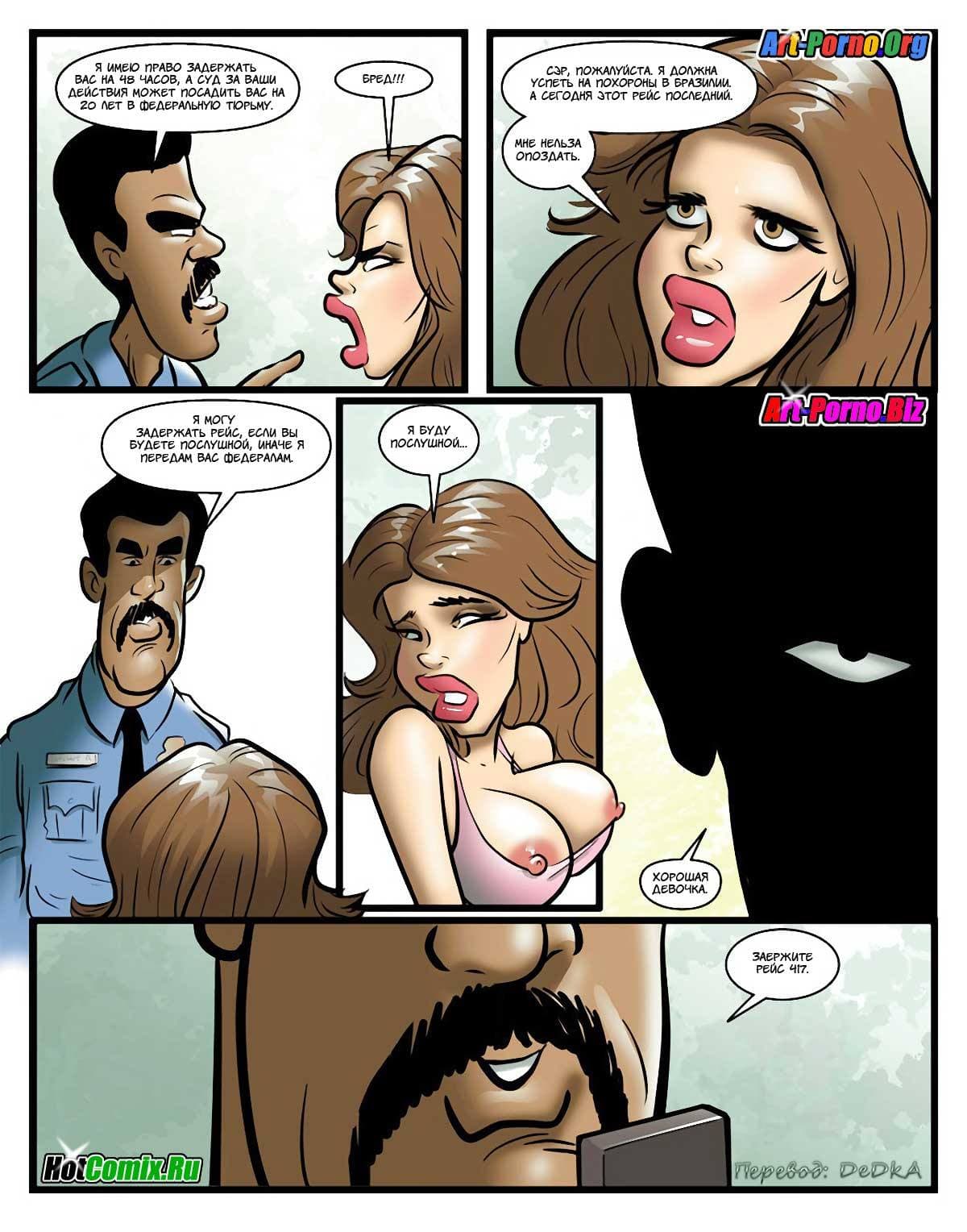 Секс комикс Досмотр. Возбуждающие порно комиксы про трансов покажут похотливую историю, которая начинается с того, что одна женщина с очень пышными сиськами, чуть ли не вываливающимися из платья застряла в очереди в аэропорту на оформление регистрации. Дама не на шутку завелась и стала грубить всем вокруг. Это стало поводом для сотрудников безопасности, чтобы предельно досконально досмотреть психующую пассажирку. Только вот в отдельном кабинете дама подверглась не только тотальному досмотру, но и кое-чему еще, да и вообще женщина оказалась не совсем дамой, что впрочем, ничего не изменило…