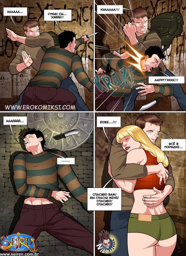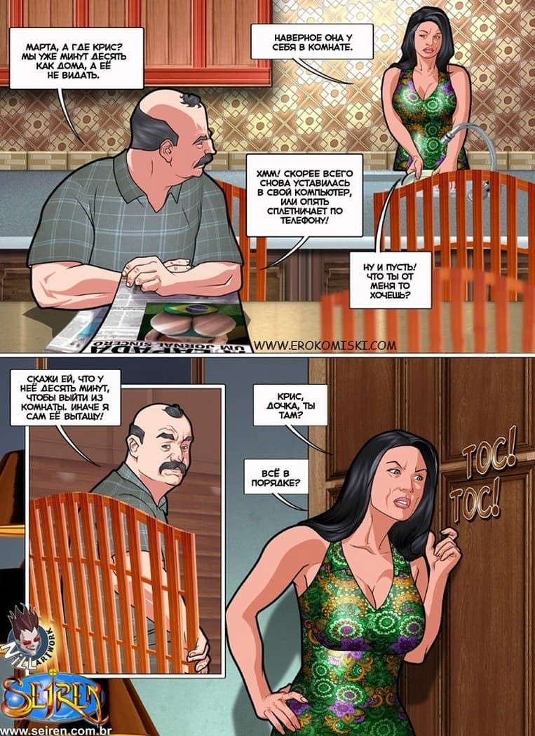 Очередной комикс горячая кузина начинается с того, что очаровательная Присцилла возвращалась к Луису, купив для него продукты. Но вдруг, неожиданно, на нее напал грабитель. Он не только хотел забрать ценности девушки, но и изнасиловать ее. Очень кстати рядом оказался ее давний знакомый Денис, который заступился за красотку, набив морду подонку. Тем же временем Луис прячется у Крис дома, от ее отца, а сама же девушка берет за щеку его твердый член.