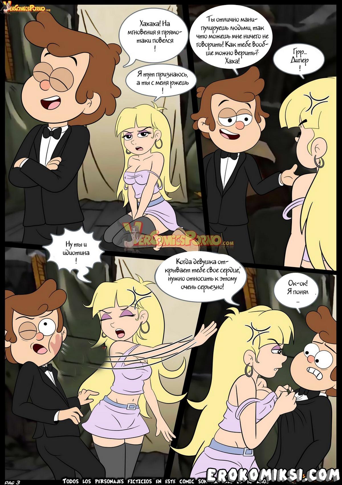 Порно комикс Гравити Фолз. Не верь своим глазам. Наши дорогие посетители представляем вам возбуждающий пародийный секс комикс Гравити Фолз. Многие уже знакомы с главными героями, коим очень нравиться проводить различные расследования и разгадывать тайны. Но их личная жизнь со всеми интимными подробностями всегда оставалась большой тайной. Но сегодня данная история откроет занавес и покажет во всей красе великолепное порно, которое устраивают похотливые герои известного сериала.