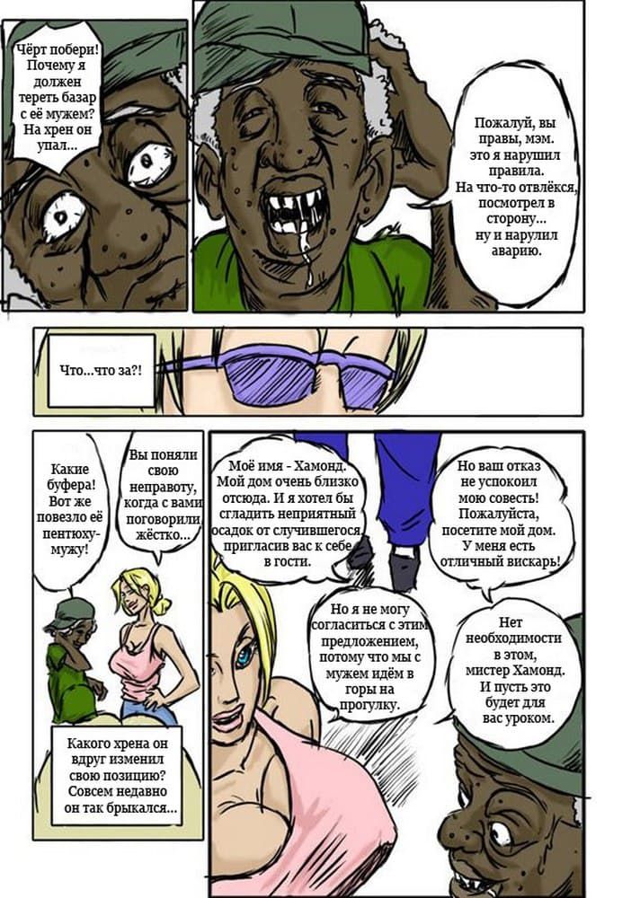 Данный порно комикс покажет нам хитрожопого уродливого негра, с развитым инстинктом ебаря, который очень сильно возжелал овладеть недоступной замужней женщиной, с превосходными большими сиськами. У него был козырь в кармане, он знал одно сильнодействующее заклятие, и им воспользовался.