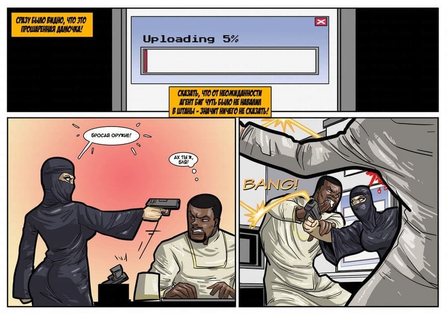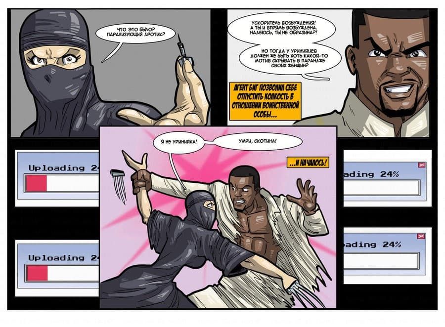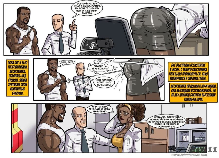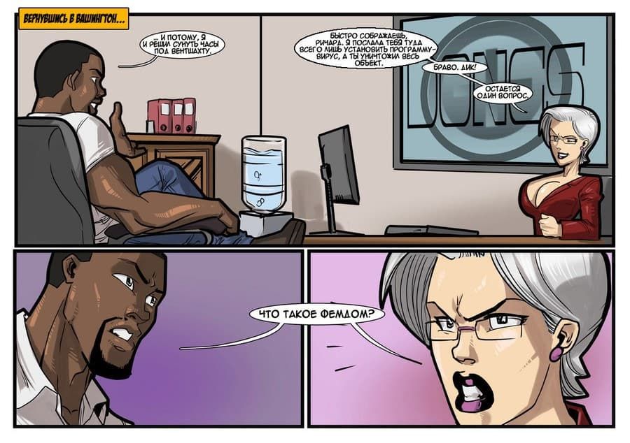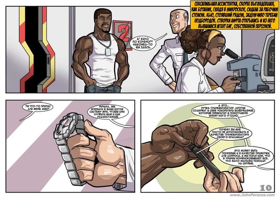 Всем любителям смотреть бесплатно порно комиксы советуем насладиться данной секс историей. Она будет повествовать о супер агенте Дик Биге, постоянно спасающего весь мир. Все женщины от него просто в восторге, поэтому ради дела и собственного наслаждения он всегда оставляет за собой спермовый след, на телах и губах прекрасных дам и мчится дальше бороться со злом.