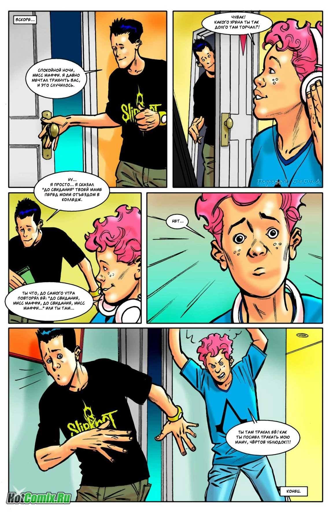 Для вас бесплатно эрокомикс, снова показывающий интимные приключения Дугги и мамаши его друга Маффи. Как вы помните, зрелая милфа выпила целую упаковку таблеток, увеличивающих сиськи. Теперь ее грудь просто огромна, но при этом возникла угроза для самой взрослой бляди. Что же делать!? Хорошо, что рядом с ней ее молодой любовник, который придумал решение проблемы.