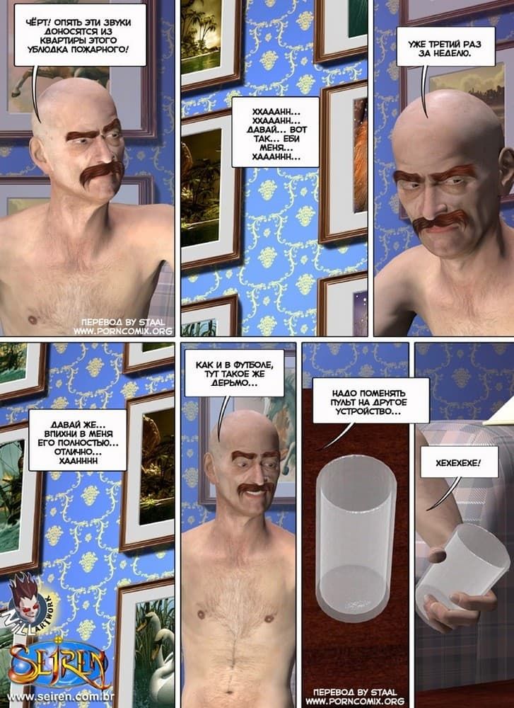 3д комикс ххх об одном мужчине, который на протяжении длительного времени слышит шум от возбуждающей ебли за стенкой в соседней квартире. Его сосед работает пожарным и постоянно приводит в дом различных шлюх, которых нещадно долбит во все дырки. Охи и ахи этих оргий очень заводят нашего героя, но он даже не подозревает, кого на этот раз жадно трахает сосед.