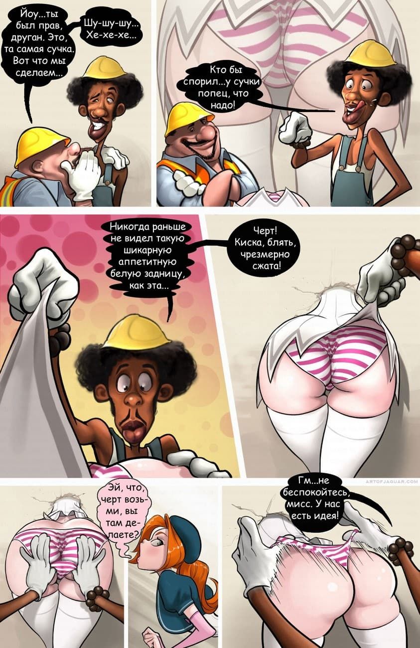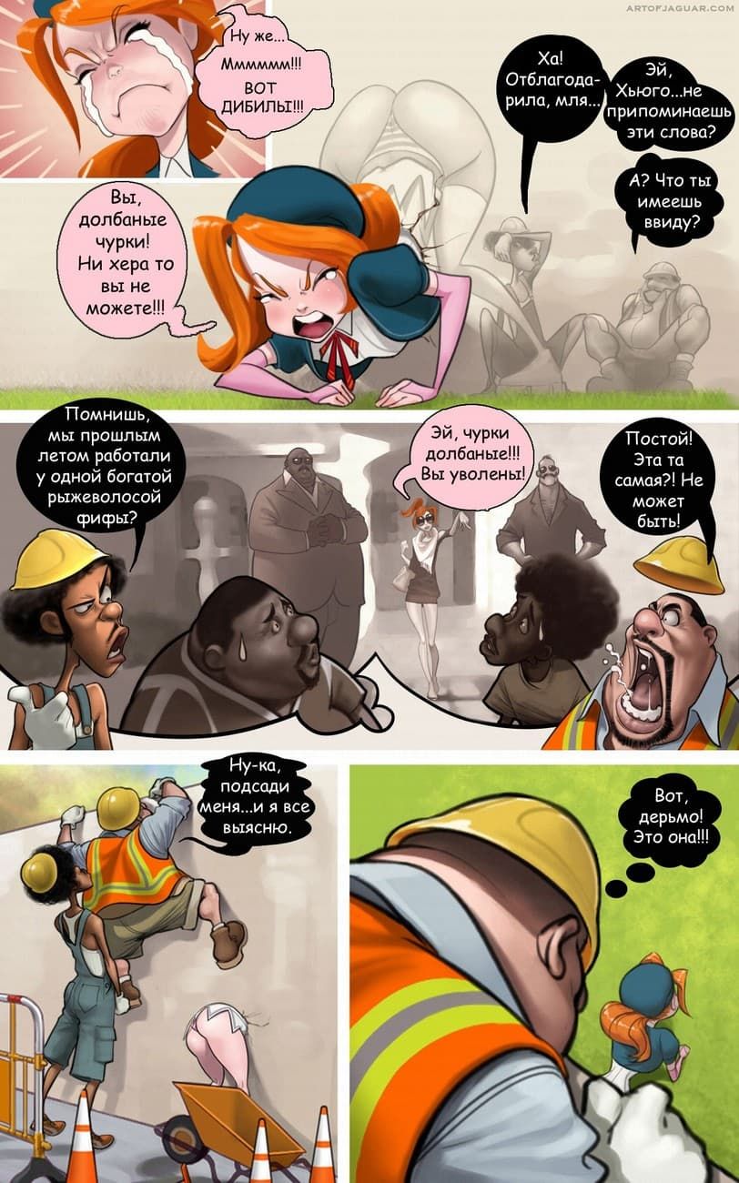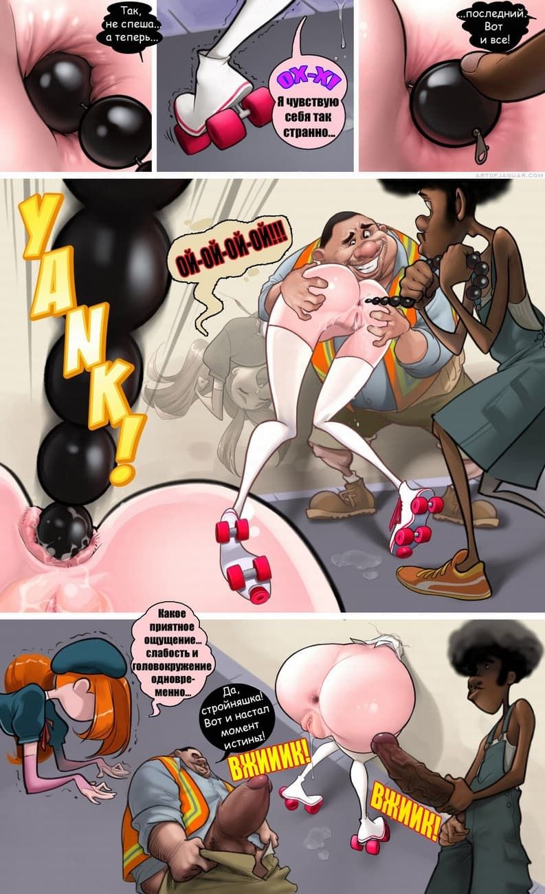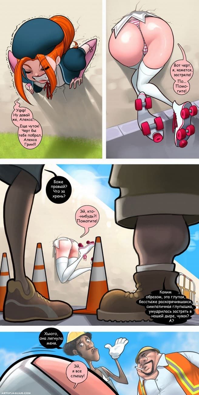 Комикс – порно рассказ о том, как Алекса застряла в заборе, и этой неловкой ситуацией воспользовалось множество представителей мужского пола, устроив ей настоящую групповуху, они с нетерпением и небывалым рвением стали жадно трахать во все дыры стервозную красотку, особенно уделяя внимание узкому анусу.