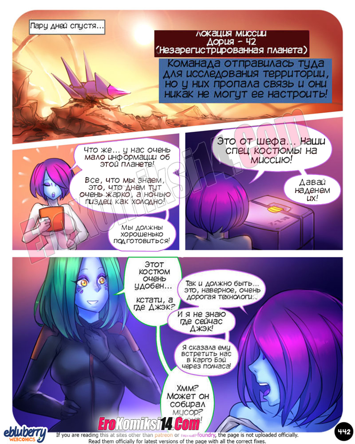 Порно комикс Секспедиция 22 часть. Sexpedition. Ebluberry. Команда готовится к новой миссии, после высадки на неизвестной планете пропала связь с кораблем, но миссия продолжается. А Джек, не упускает помять сочные сиськи красотки из его команды.