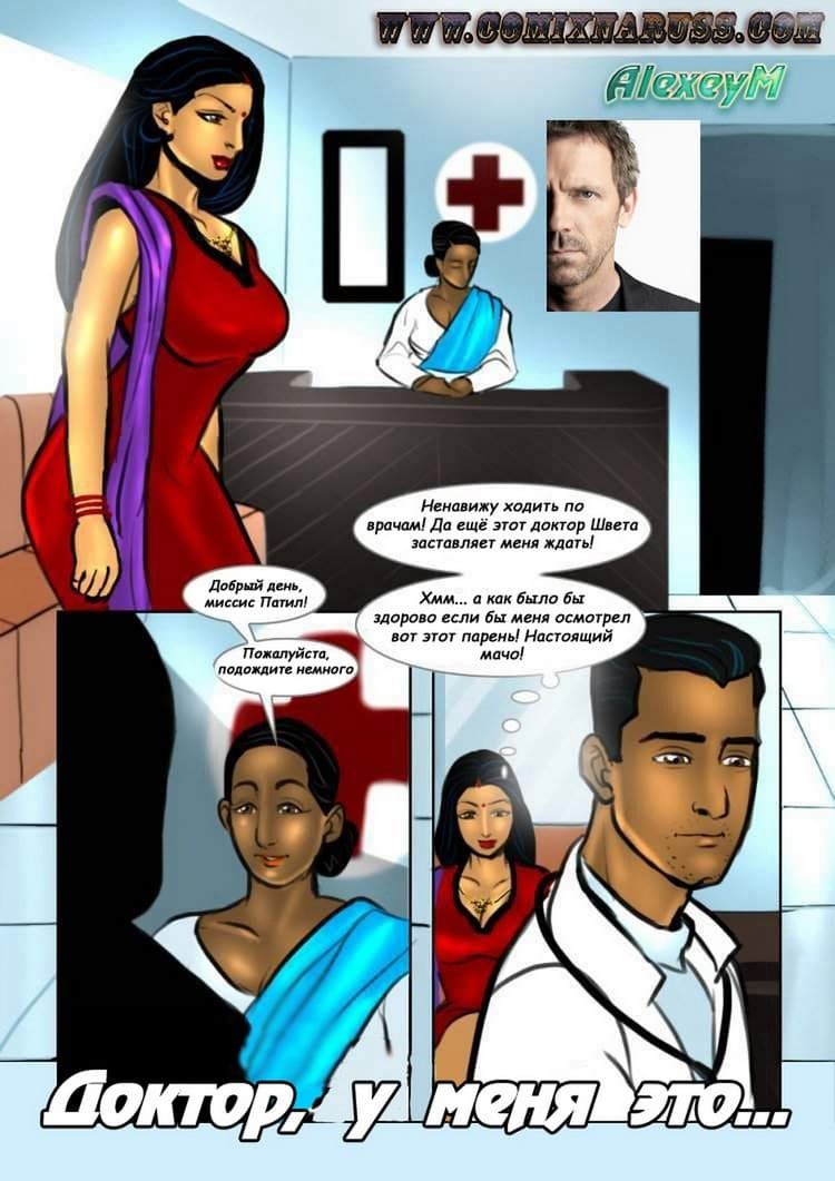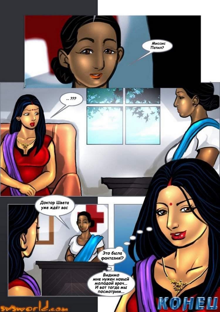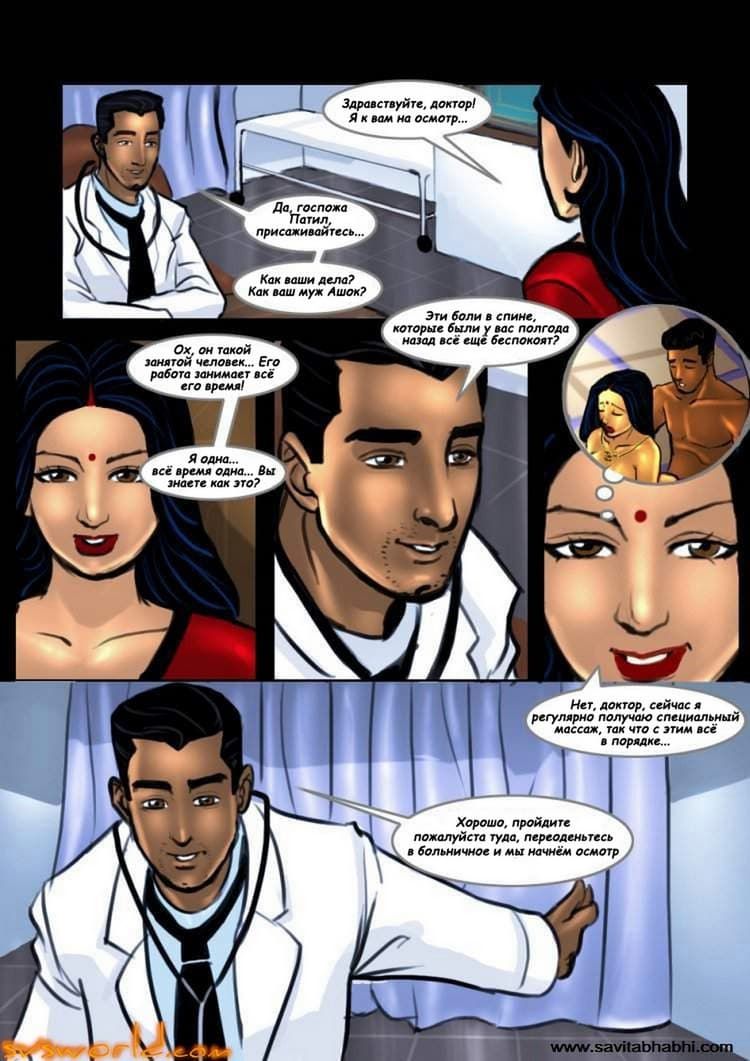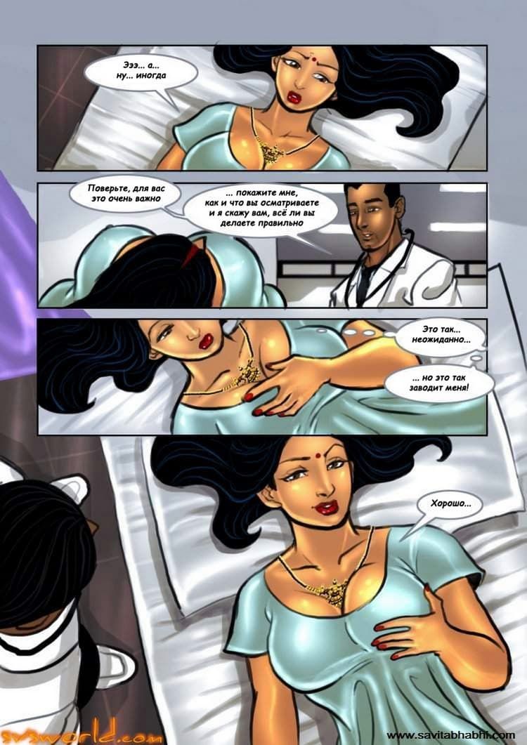 В этой части секс комикса о прелестной индийской женщине рассказ пойдет о том, как Савита Бхабхи пришла на прием к своему лечащему врачу. Был он стар и красотой, соответственно не блистал. А наша зрелая героиня представила себе, как – будто ее принял молодой специалист, который начал осмотр всего возбуждающего тела Савиты. И даже проверил тугую вагину женщины, с помощью своего стоячего инструмента.
