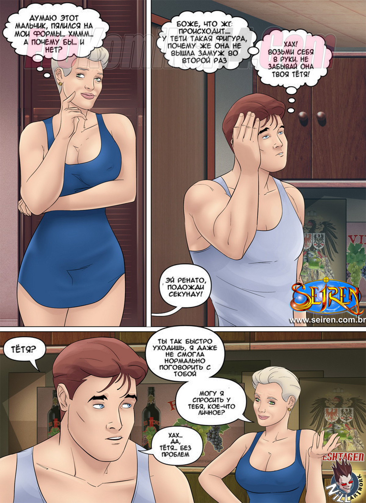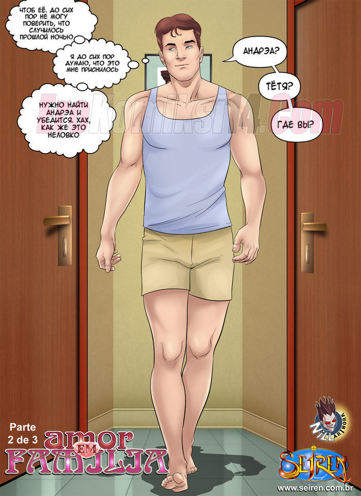 Порно комикс Семейная любовь. Часть 2. Seiren. Проснувшись утром, парень не мог поверить, что ночью он трахал свою горячую кузину. Но он еще не попал в ловкие сети его развратной тети. Она позвала его помочь ей в кладовке, а когда племянник зашел, захлопнула дверь и набросилась на него. Он не смог отказать это сексуальной милфе.