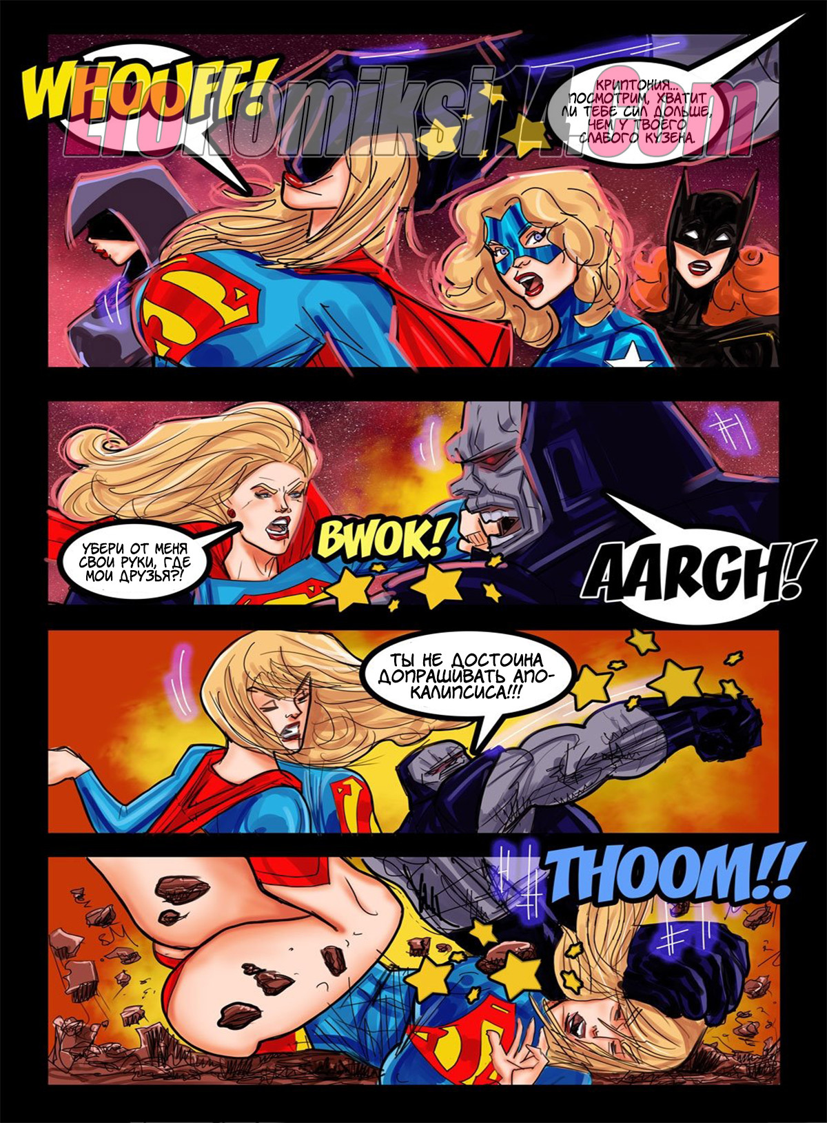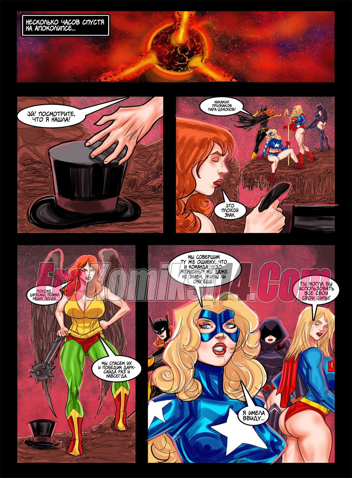 Порно комикс Супер женщины. Супер-Женщине и её команде бросил вызов Дарксайд. Попав на его планету он сразу же подчинил их волю и силу лучом. А после превратил их в рабынь, чтобы они исполнили его самые грязные желания… А что за желания, читайте в комиксе…