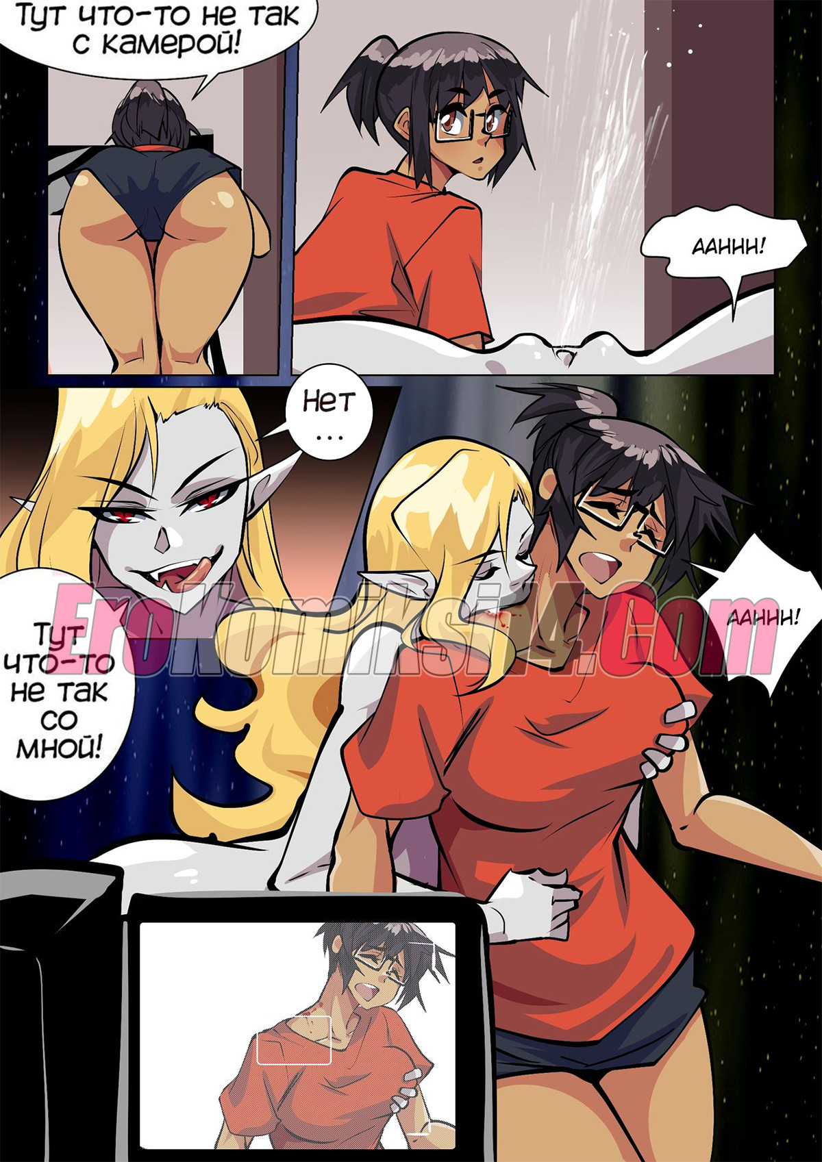 Порно комикс Вампир, снятый на камеру. (Aya Yanagisawa). После очередной веб-камеры девушка пошла на свидание, но вернулась оттуда вампиром. Решив начать новое шоу, ее не было видно на камеру, но ей было все равно, она позвала к себе соседку и тоже превратила ее в вампира, чтобы они могли вместе заняться сексом.