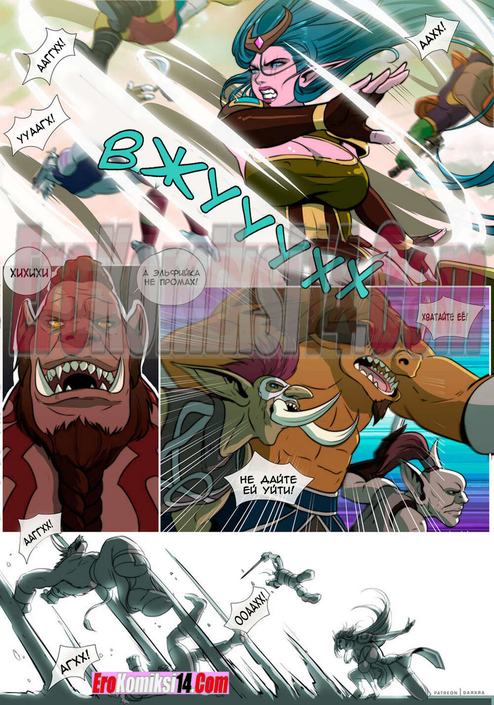 Порно комикс Варкрафт. Метка первобытной жажды. Часть 1: Железный клык. Темная ора схватила горячих эльфиек и продает их на аукционе. Парень выкупил одну за очень солидную сумму. Наверно он знает её ценность и кем эта красотка является. Но все же получить наслаждение за свои деньги он намерен.