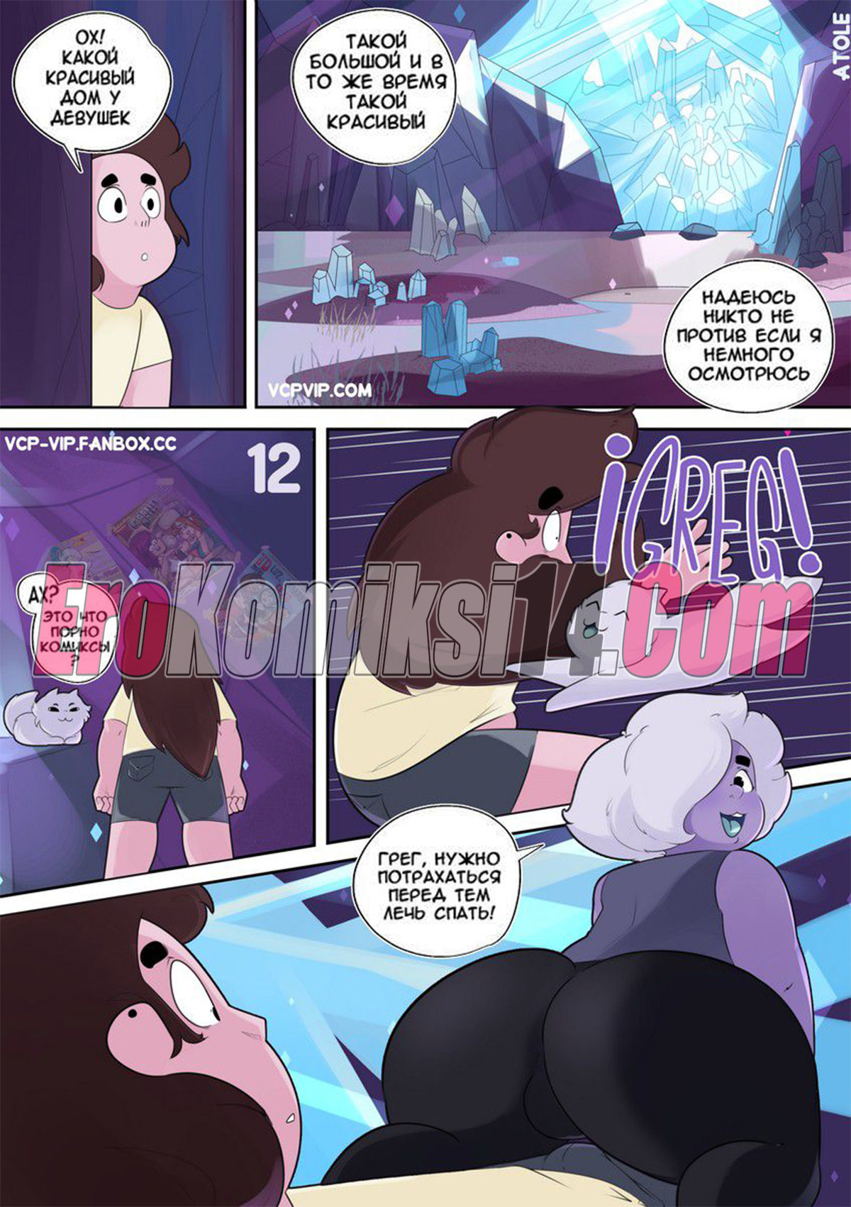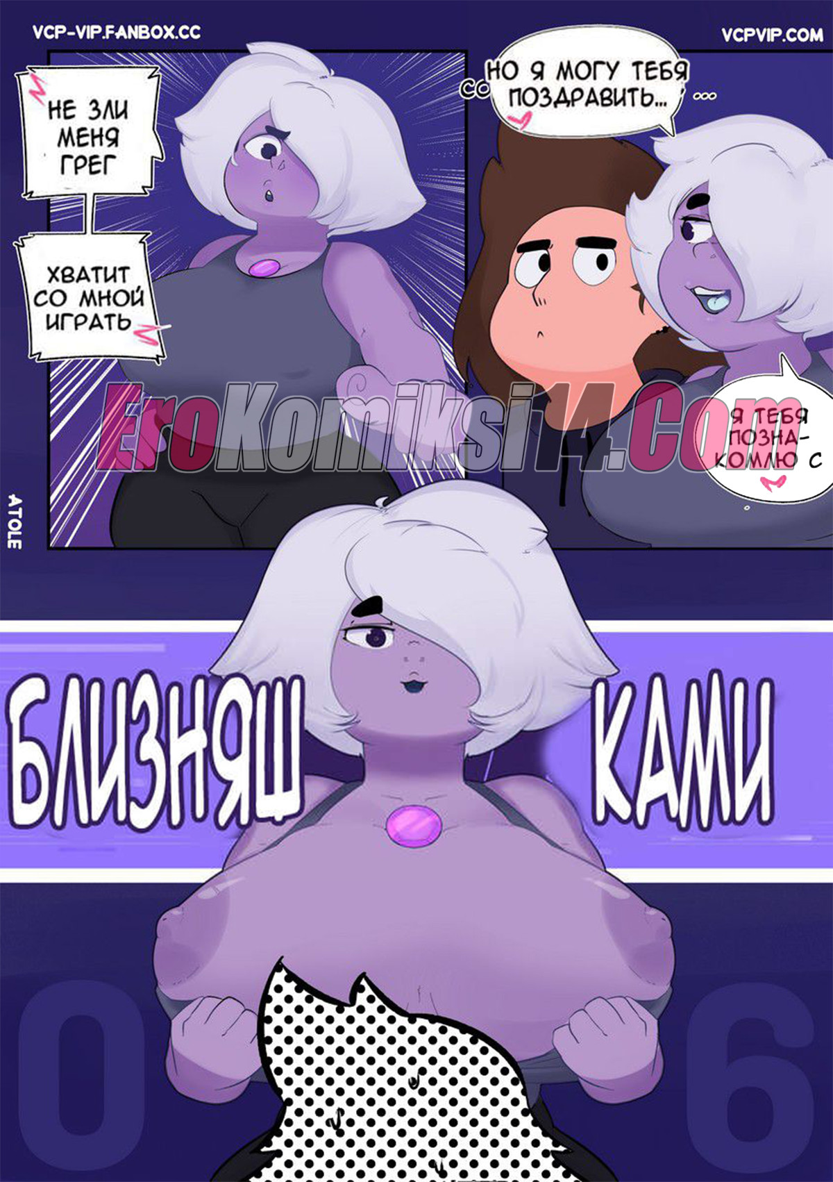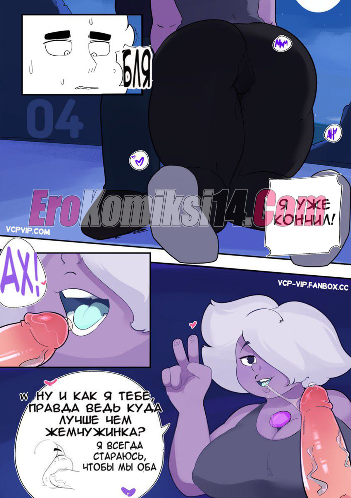 Порно комикс Вселенная Стивена. Часть 2: Фиолетовая тигрица. Lilarts. После того как парень трахнул двух самоцветок и оставил их без сил, им на помощь примчалась самая сильная из них, чтобы на себе испытать его большой член.