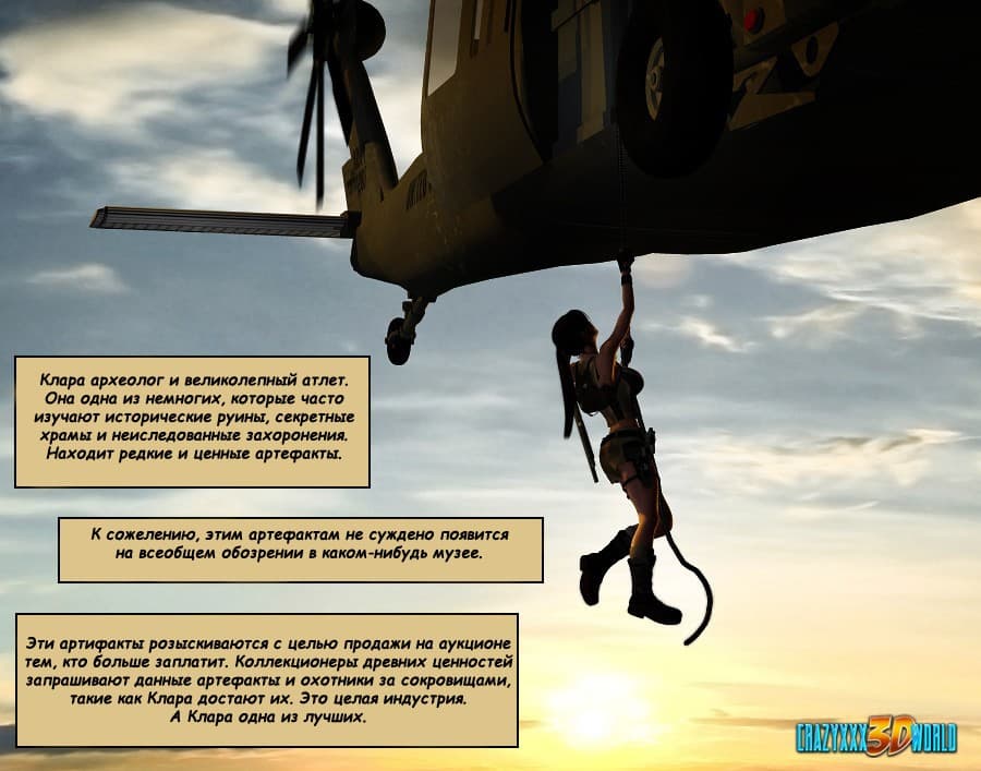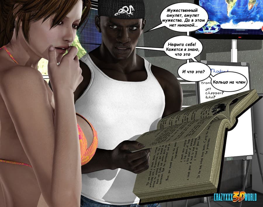 Перед вами интересный приключенческий секс комикс об очень симпатичной, грудастой и воительной женщине по имени Клара Рэвенс. Действия этой истории разворачиваются вокруг древнего артефакта – кольца, которое дает огромную мужскую силу, но одевать его надо на член, и его волшебные свойства проявляются во время бурного секса. Клара решает проверить магию предмета, испытав их на своем чернокожем помощнике. Подробности взрослого эксперимента смотрите дальше.