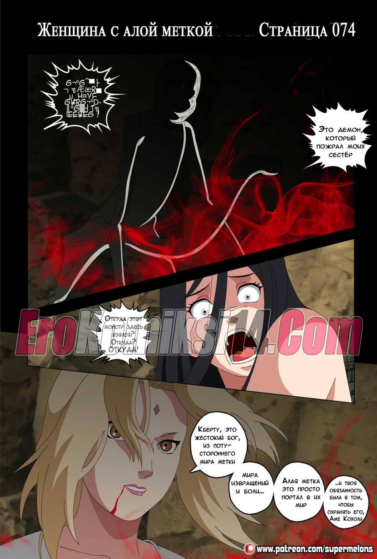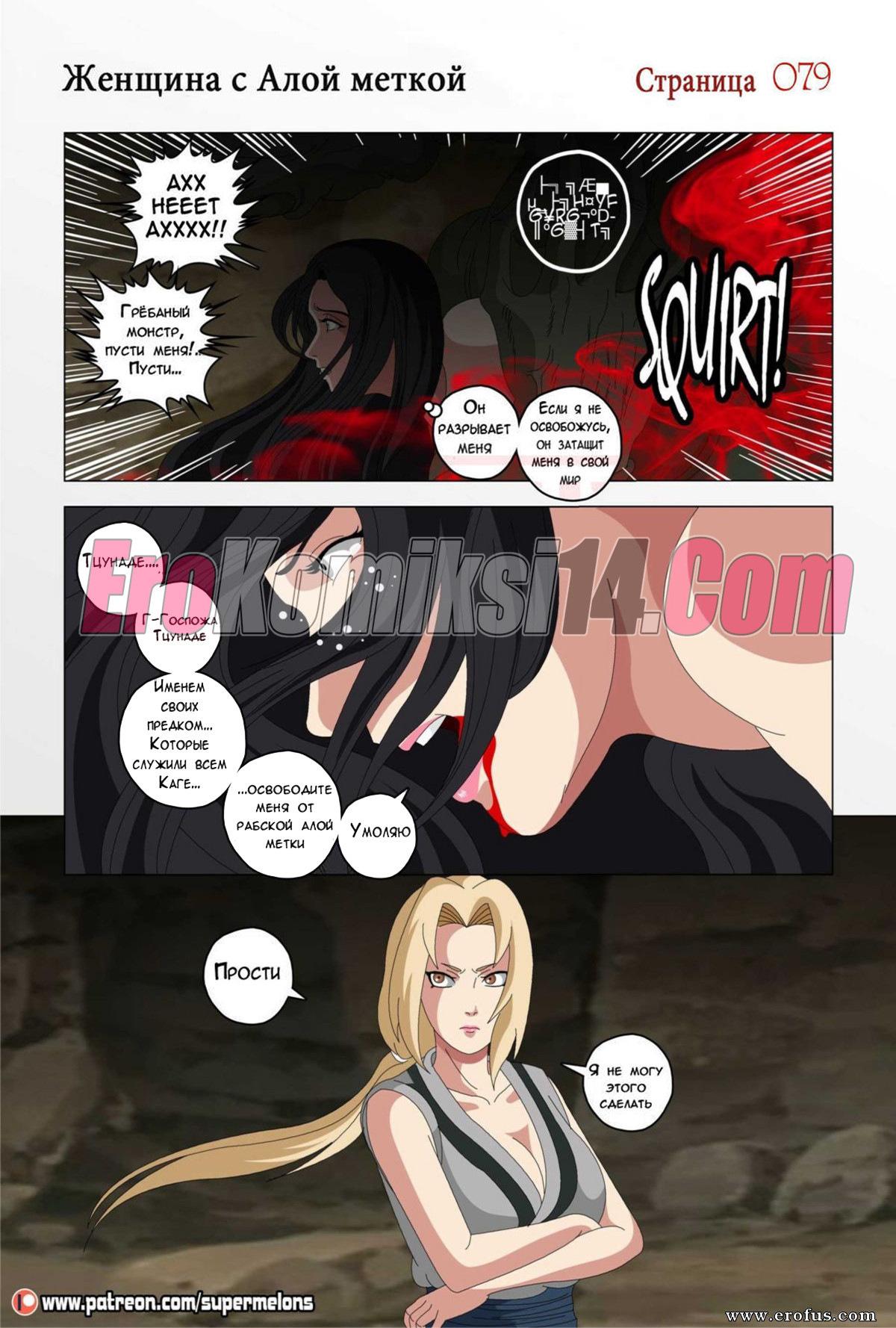 Порно комикс Женщина с алой печатью. Хината. Super Melons. Девушка очнулась в незнакомом месте совсем голая, она не помнит как тут оказалась и что произошло. Блуждая по темной пещере она услышала звуки секса, и это пробудило в ней плохие воспоминания. Она поняла, что надо срочно убегать из этой пещеры.
